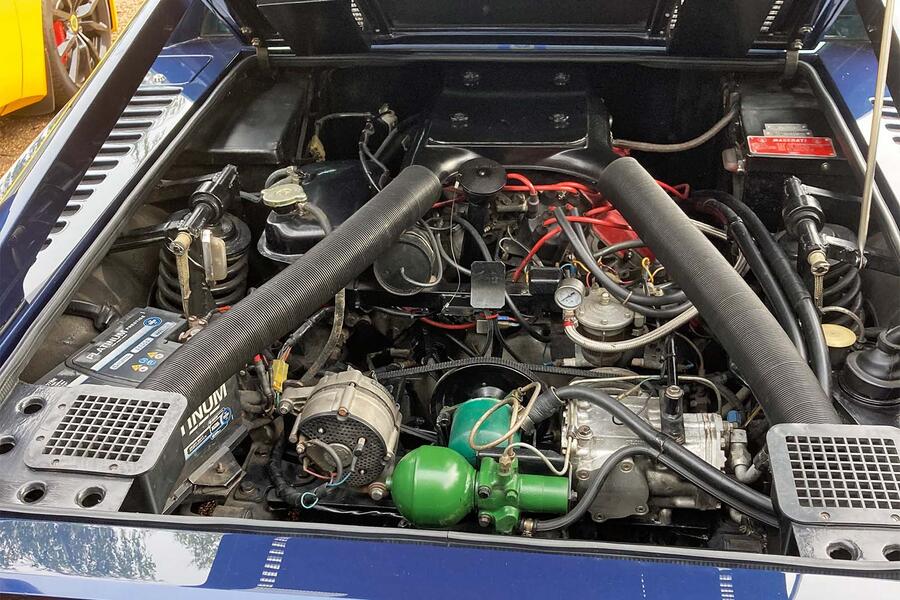 Ovo je Maserati Merak SS, sestrinski automobil Bore, ali s 3,0-litrenim V6 motorom umjesto Borinog 4,7 V8. Budući da je sportskija SS inačica, 50 kg je lakša od standardnog Meraka i ima tri veća karburatora plus viši stupanj kompresije, što zajedno povećava snagu sa 185 KS na 215 KS.