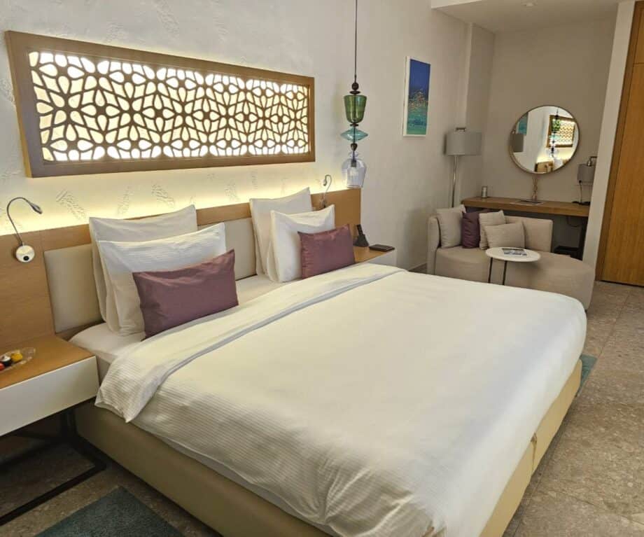 Boravio sam u sobi 3010, Grand Deluxe apartmanu s pogledom na more, s Simmons “Sweet Sleeper” krevetom king size (oštar bijeli posteljni rublje, naravno) koji usidrava veliki prostor dizajniran s tihom, promišljenom preciznošću.